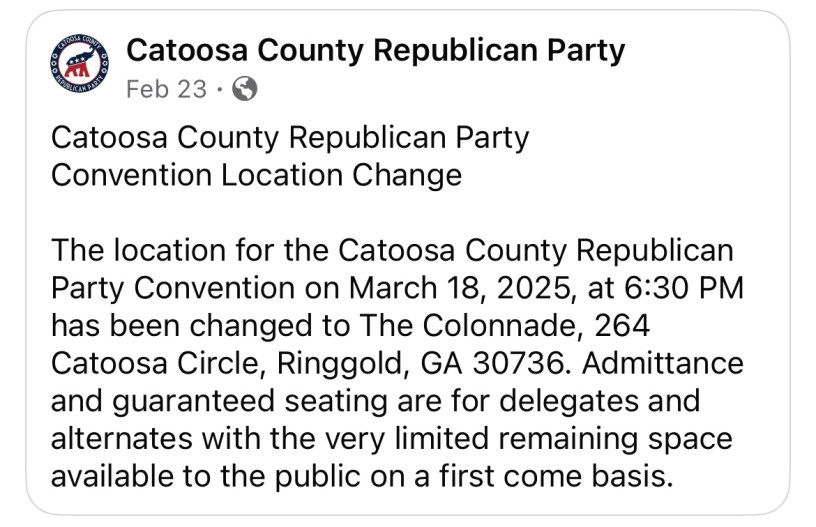 The Catoosa County Republican Party is having its convention next week. One of the most pivotal issues is: does a political party, a private organization, have the right to vet and even exclude candidates from running as a representative of that party in its primary, or should voters decide who advances to the general election? The current Catoosa GOP leadership prides itself on efforts building party participation and turning out votes for President Donald Trump, but some county Republicans are unhappy with another element of their work to renew the party: vetting and excluding some candidates from the Republican ballot.